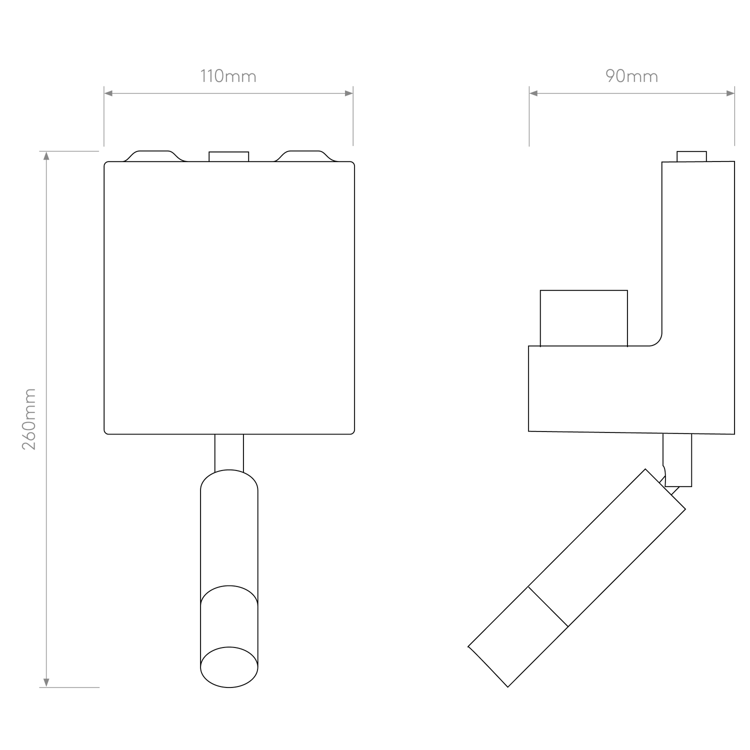 - Dimensions L x W x H: 90 x 110 x 260 mm