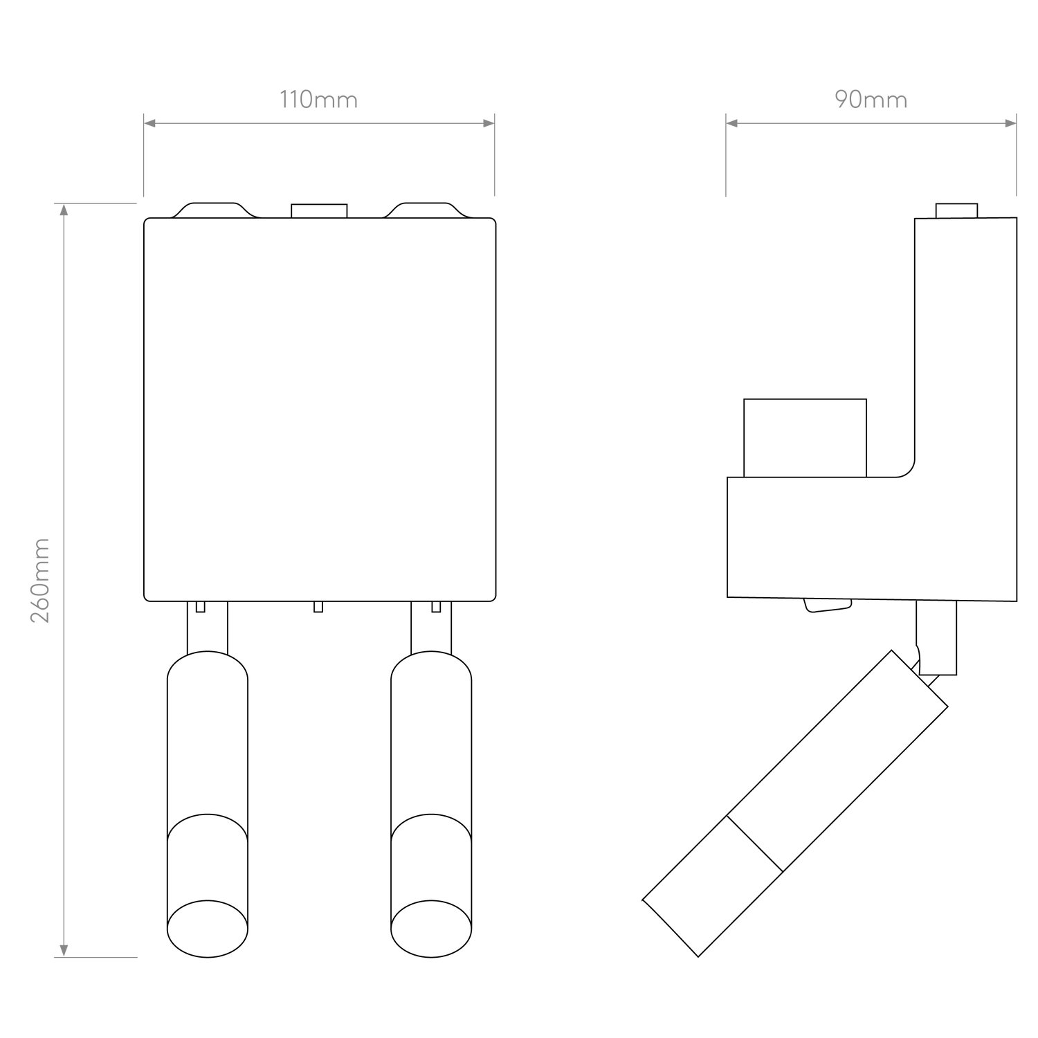 - Dimensions L x W x H: 90 x 110 x 260 mm