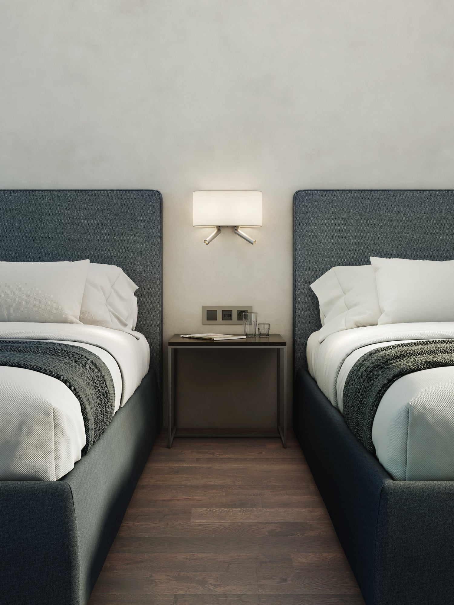 With its sleek design evoking modernist architecture, Venn provides a warm, ambient glow along with functional reading light to any contemporary guest room or other hospitality space. Its convenient plug-in design and durable, die-cast zinc base make Venn the ideal task lighting choice.