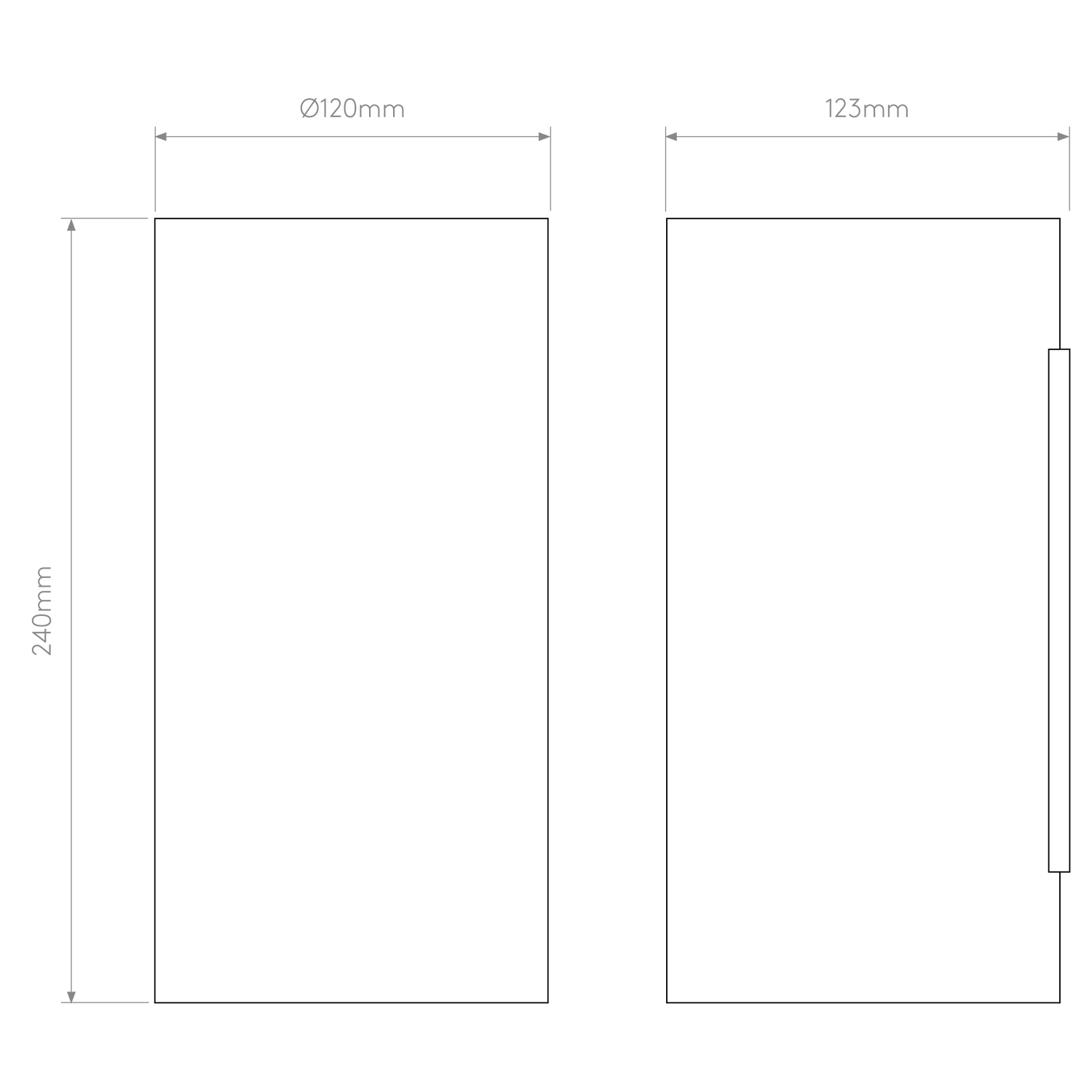 - Dimensions L x W x H: 123 x 120 x 240 mm