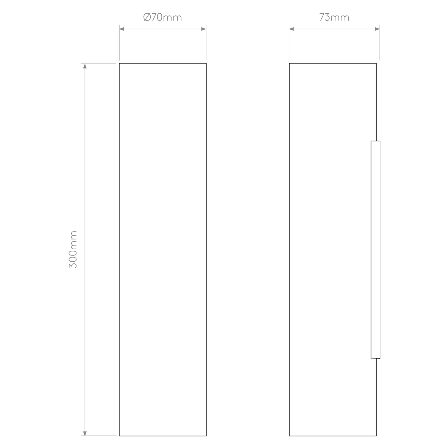 - Dimensions L x W x H: 73 x 70 x 300 mm