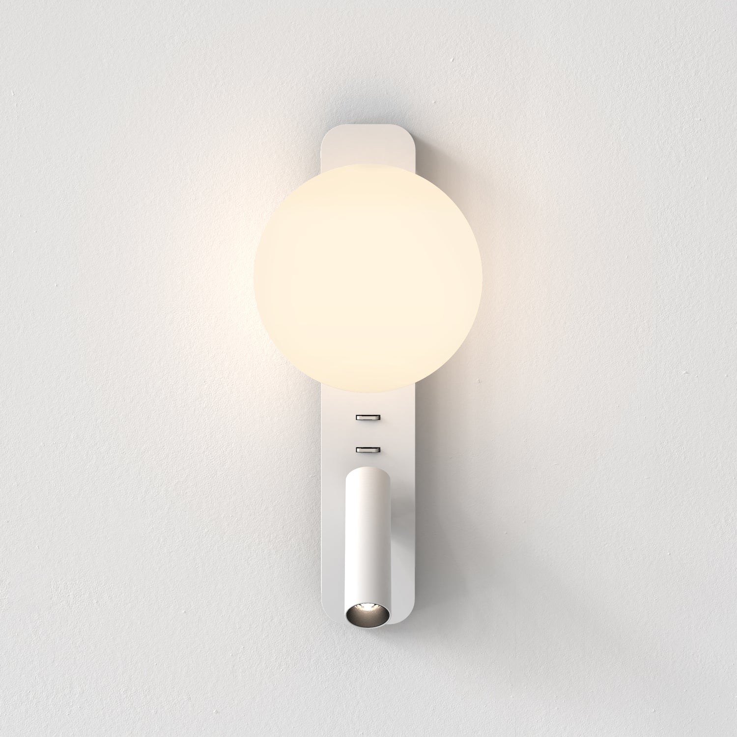 The Astro Zeppo Reading is a unique contemporary design made from aluminium and available in 3 finishes; matt white, matt black or matt nickel. Featuring a glowing flattened globe for ambience and a directional spot for reading. This reading light is ideally suited for use either side of a bedhead. Cam be horizontal or vertical mounted on a wall.