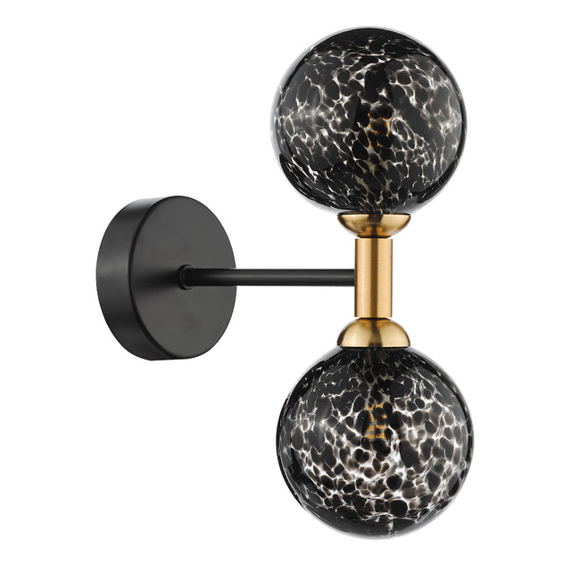 Dar Takara 2 Light Wall Light Black With Black Confetti Glass