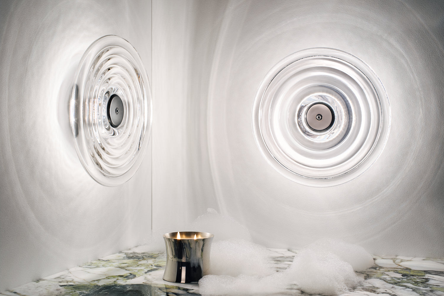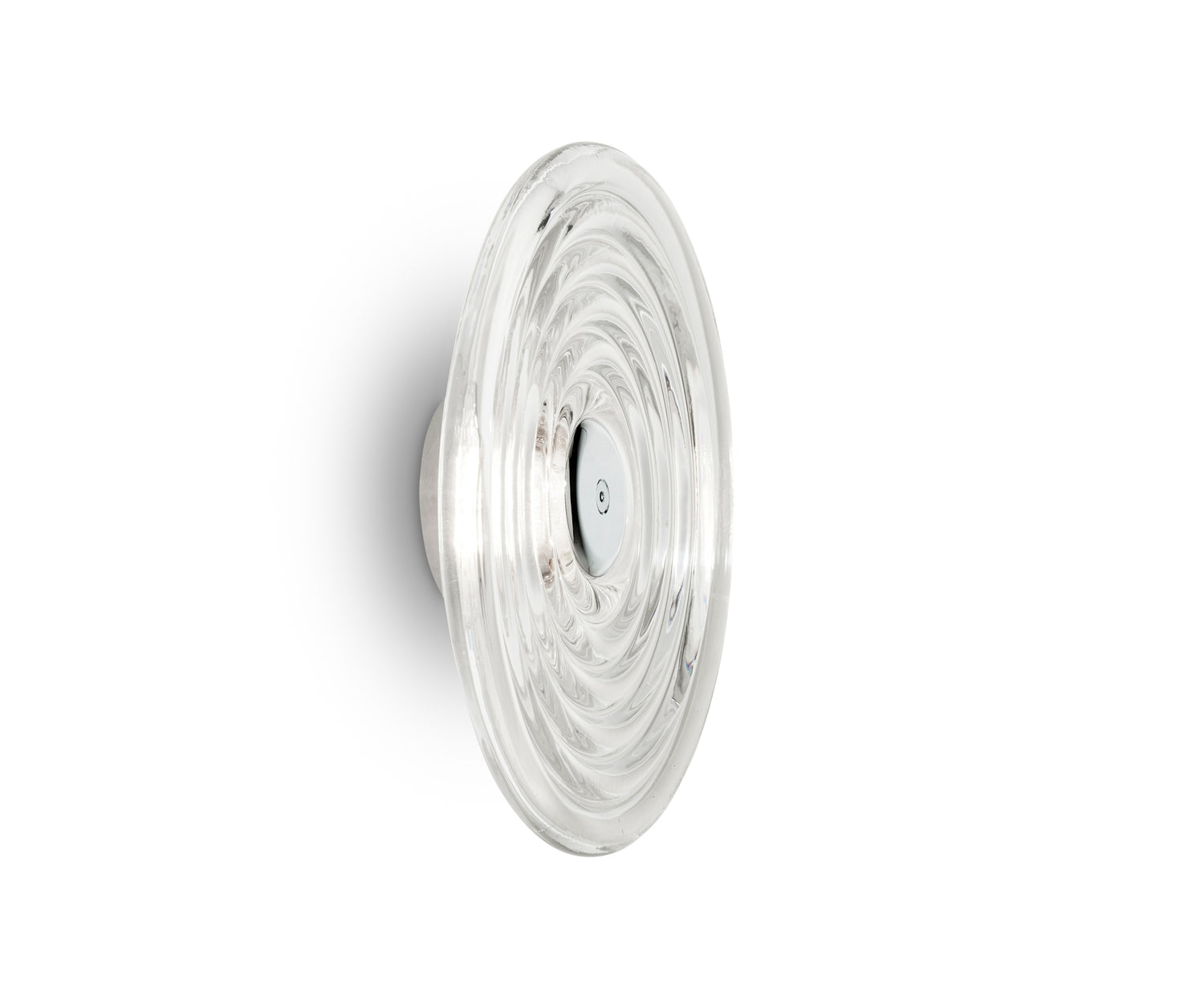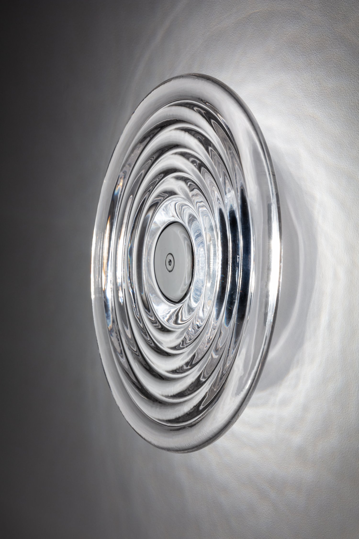 Press is a series of lights made from the thickest and most transparent glass with a satisfyingly rounded linear surface detail. The shapes are reminiscent of shipping buoys and children's toys. The ribbed glass creates diffusion of the light source and projects linear and stripy patterns. Bold in silhouette and simple in function, Press is manufactured by dropping massive globs of molten glass at 1,200 degrees centigrade, pressed in iron moulds under tons of pressure to create immensely durable lights.