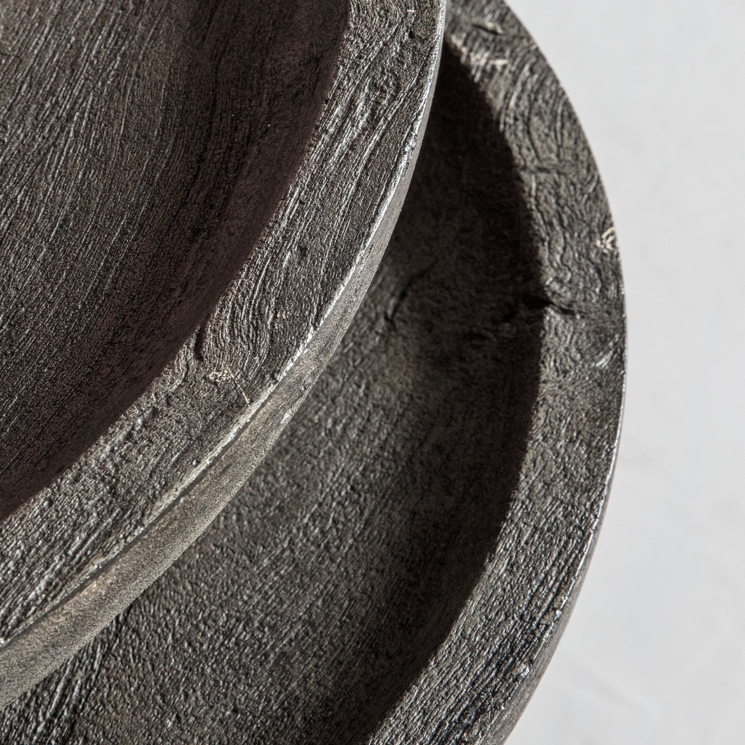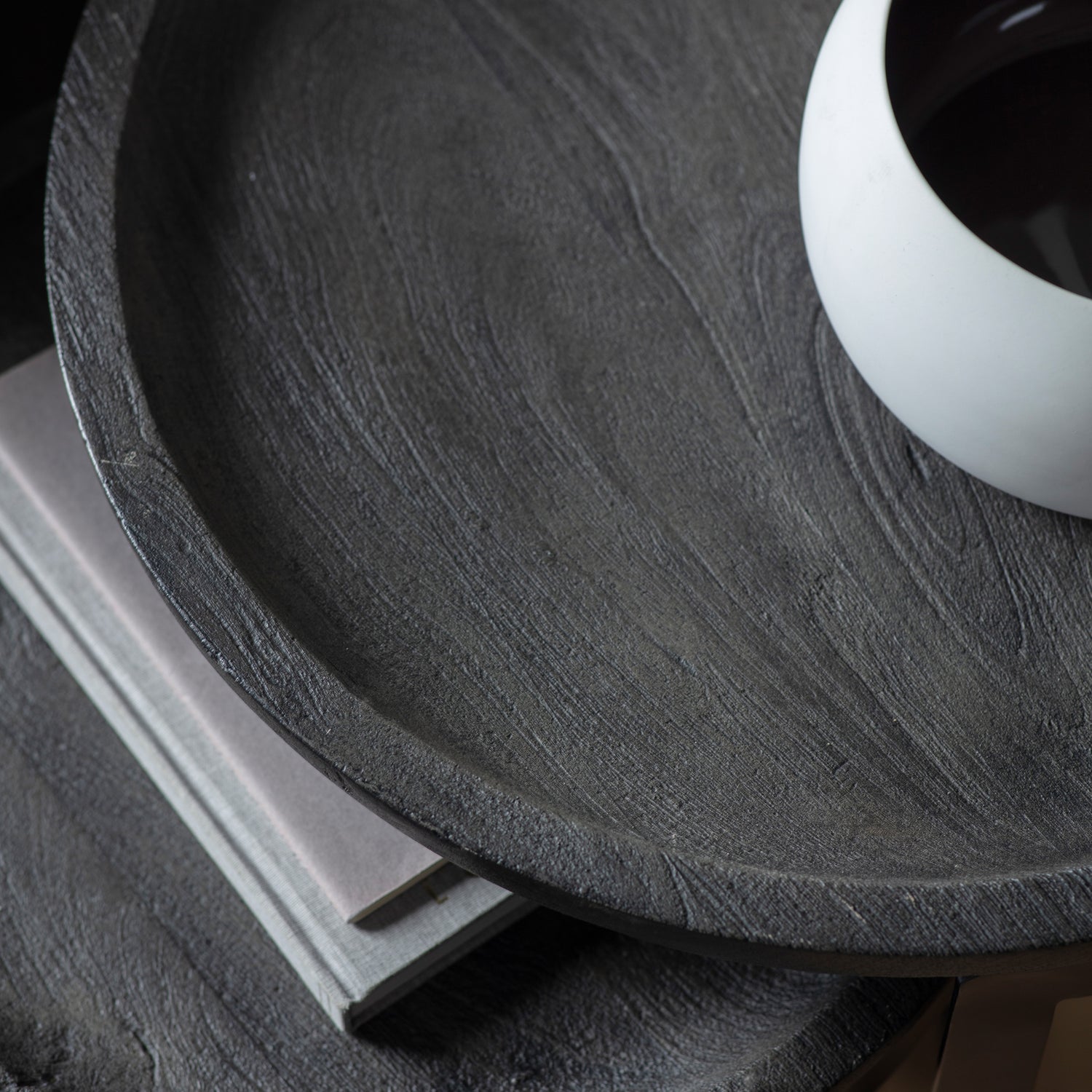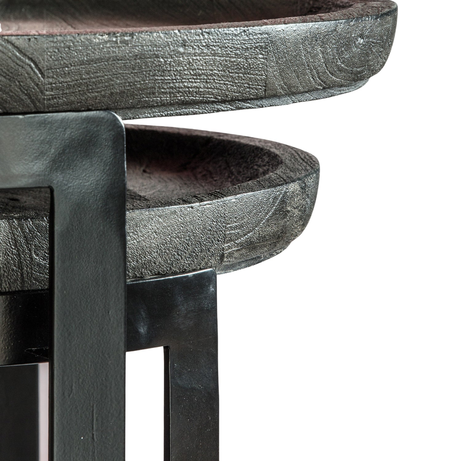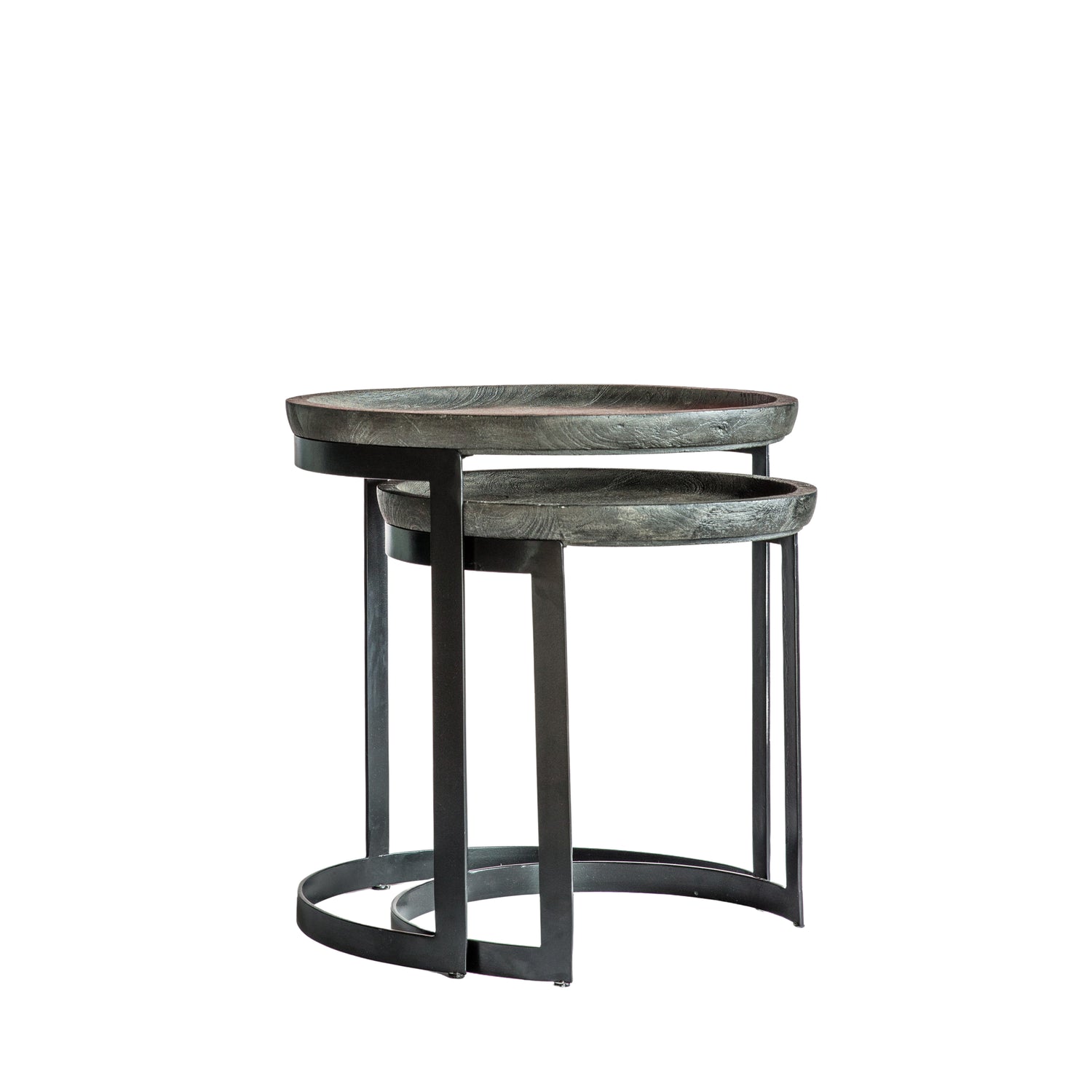 With their contemporary design, this nest of 2 tables would suit a range of interiors. The solid mango wood tops are hand turned with brushed out grain in a charcoal finish whilst the bases are cast metal.