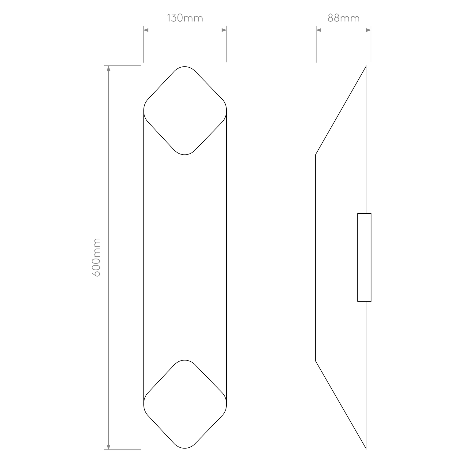 - Dimensions L x W x H: 88 x 130 x 600 mm