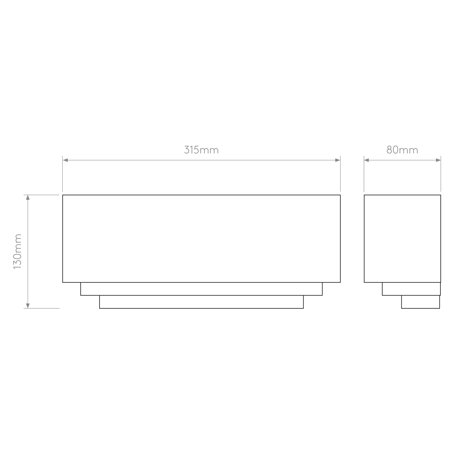 - Dimensions L x W x H: 80 x 315 x 130 mm