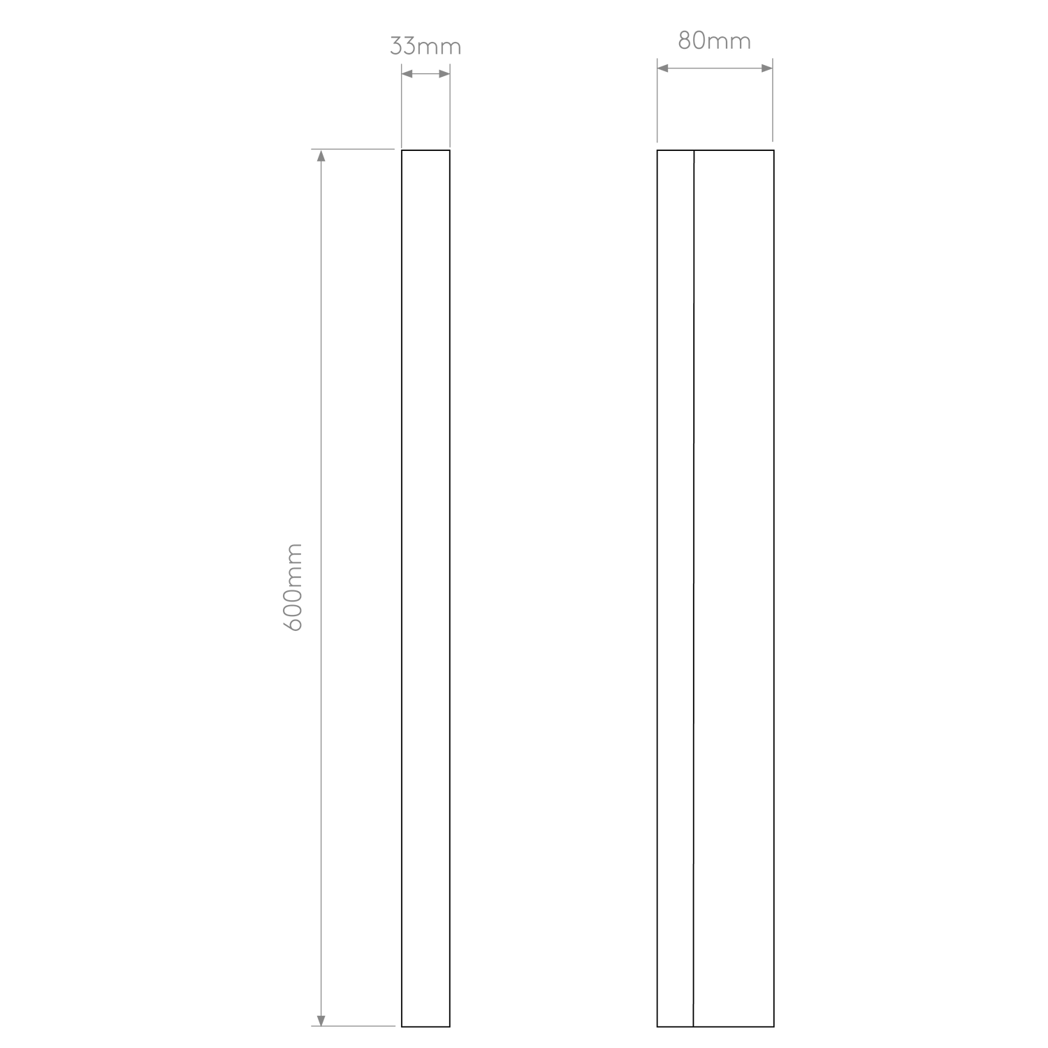 - Dimensions L x W x H: 80 x 33 x 600 mm