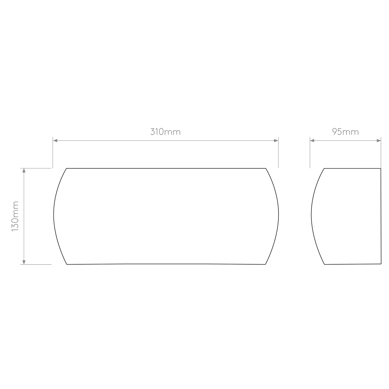 - Dimensions L x W x H: 95 x 310 x 130 mm