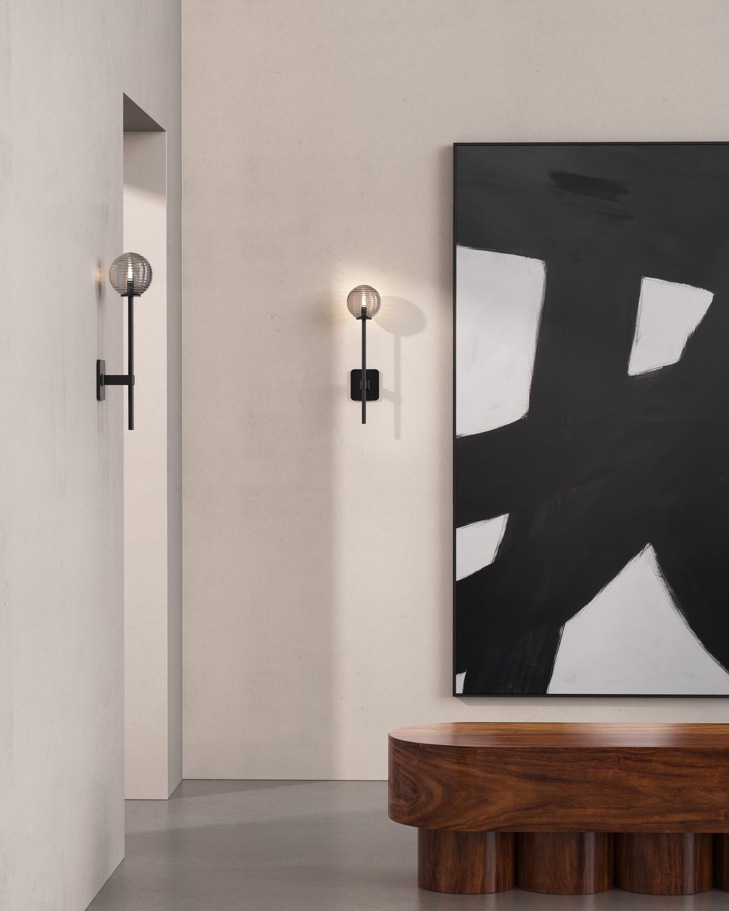 A discreet two-part metal collar keeps the glass securely in place while maintaining a refined, seamless appearance. When illuminated, the glass casts a warm, ambient glow that enhances guest bathrooms, hallways, or living areas with gentle, sophisticated light.