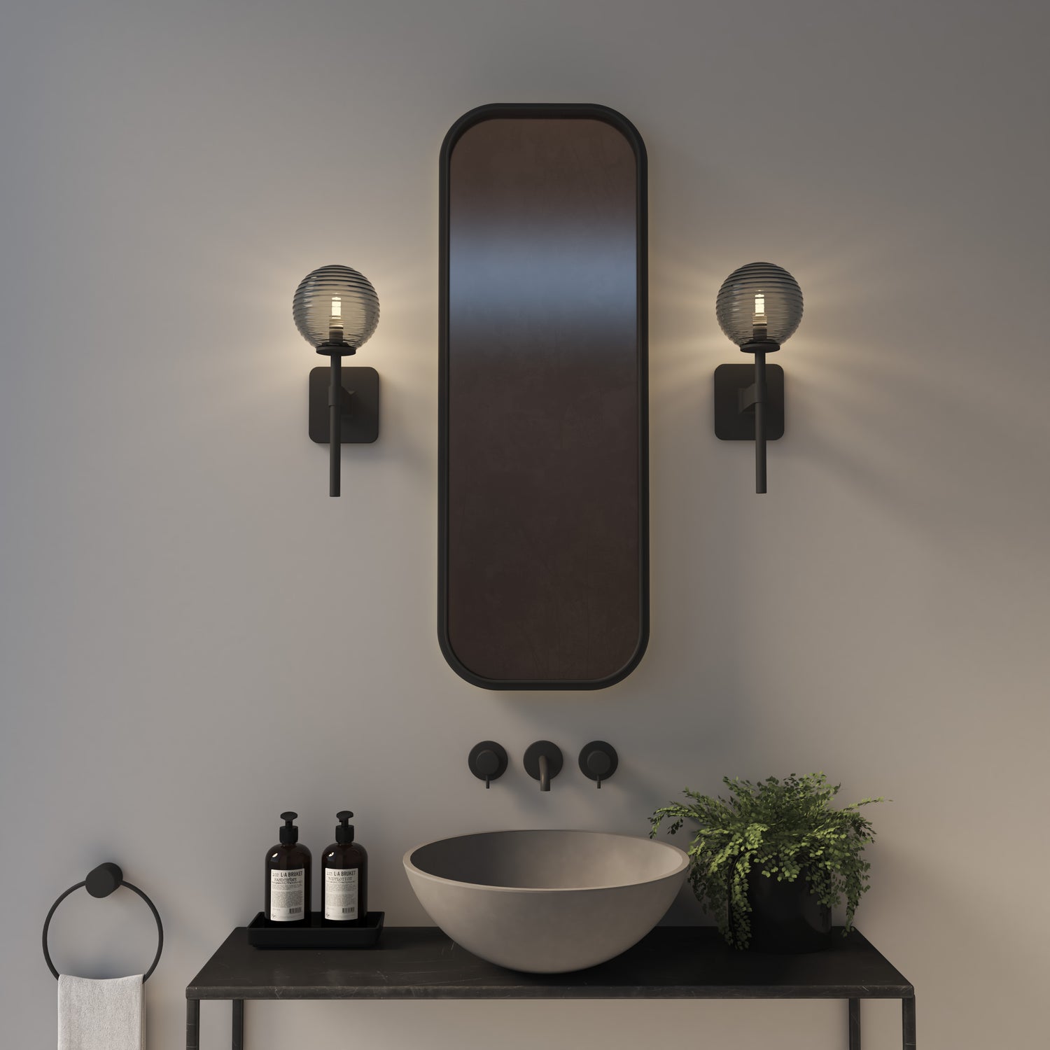 Astro Tacoma Ribbed Glass Shade in Smoked Glass