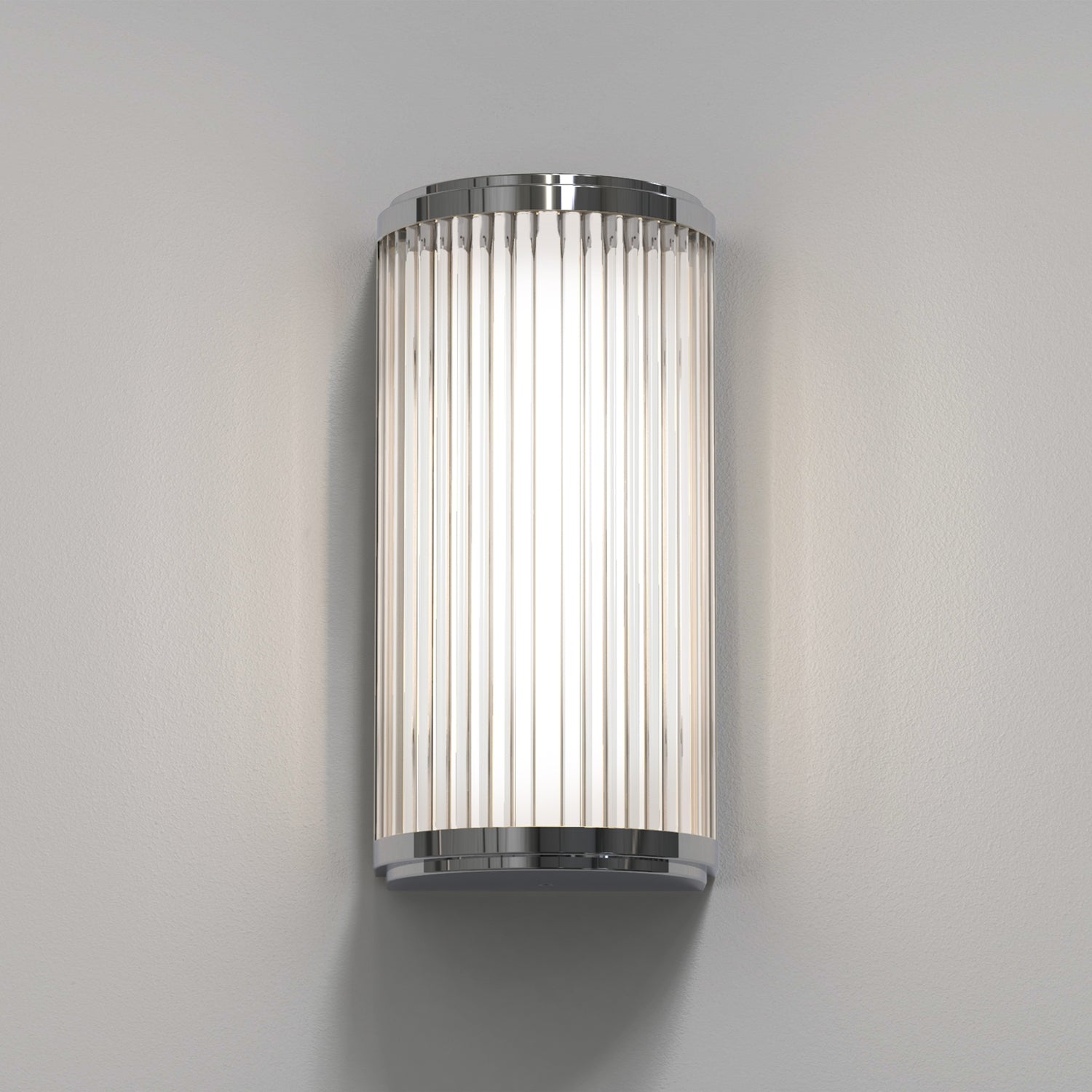 The Astro Versailles 250 wall light is inspired by classic 1930s designs, updated with a modern dimmer function. Intended primarily for bathrooms, its streamlined look complements any space. Made from individual glass rods with polished chrome end caps, it provides glare-free task lighting and is IP44 rated for bathroom use.