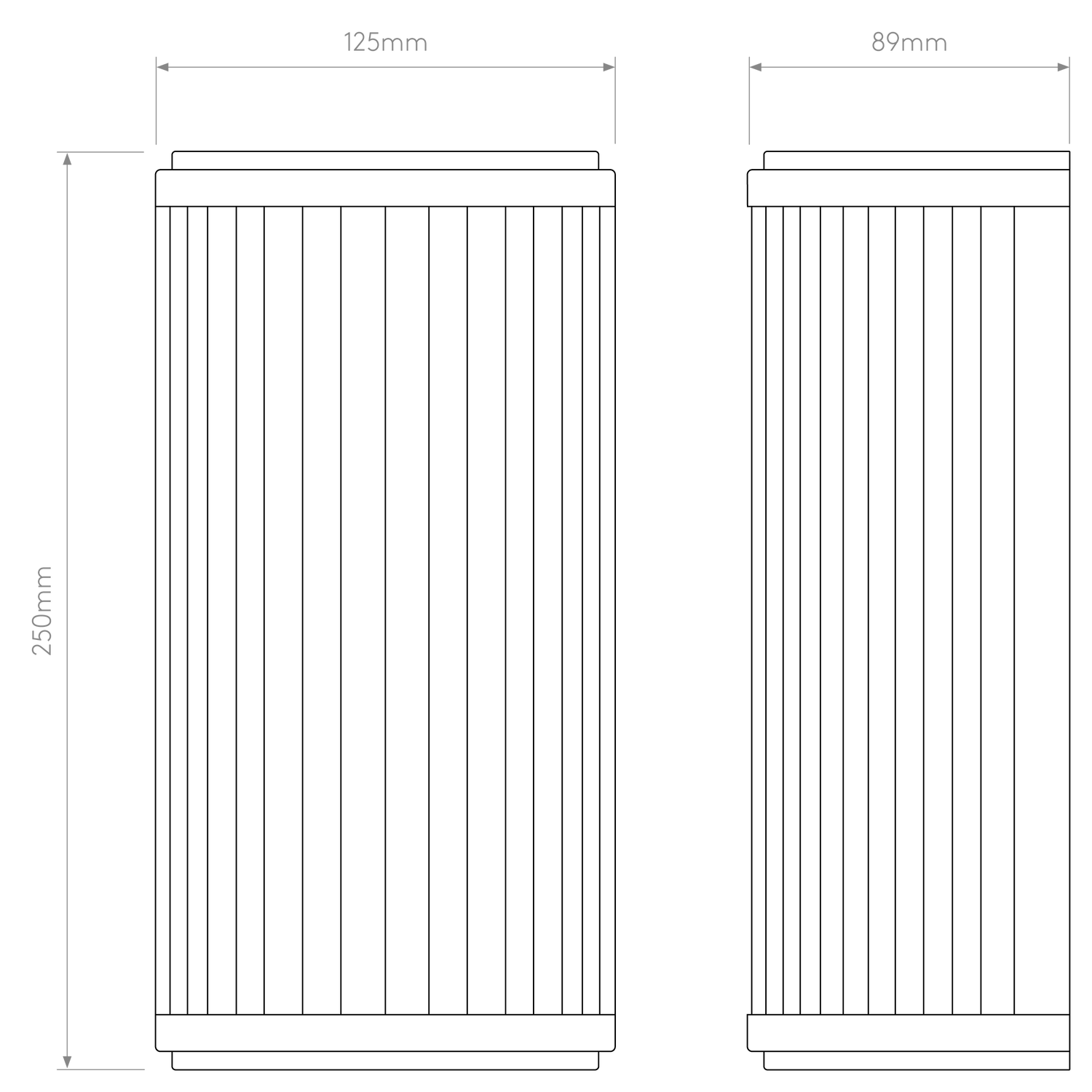 - Dimensions L x W x H: 89 x 125 x 250 mm