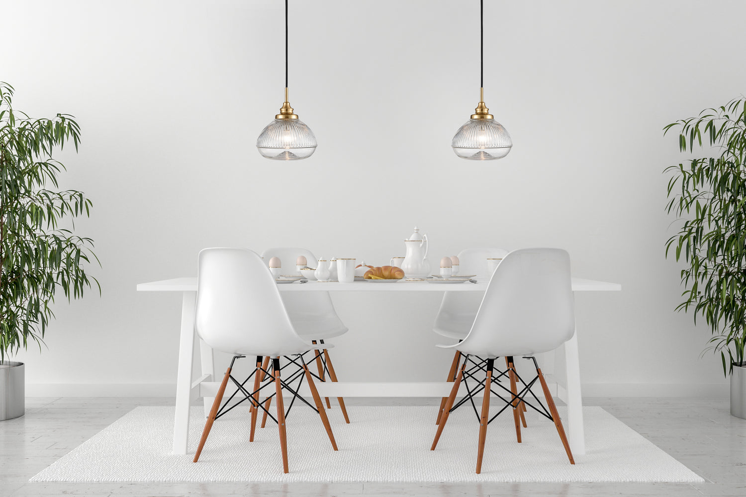 Art Deco in design yet modern in its appearance, the Acoste range is a compact collection of glass fittings. Available as a single pendant, flush ceiling light and matching wall light. This design is ideal for a hallway, bedroom or modern kitchen space with its slightly inverted base and ridged glass. Available in satin nickel or brushed brass.