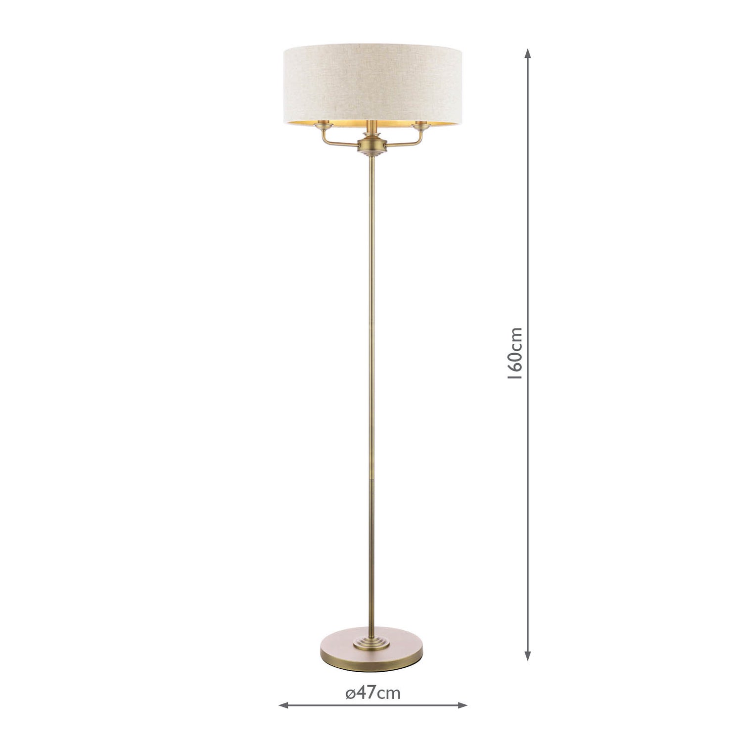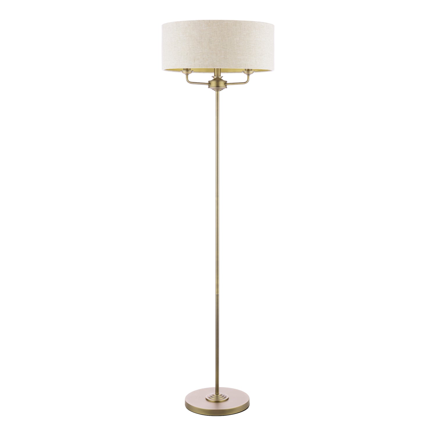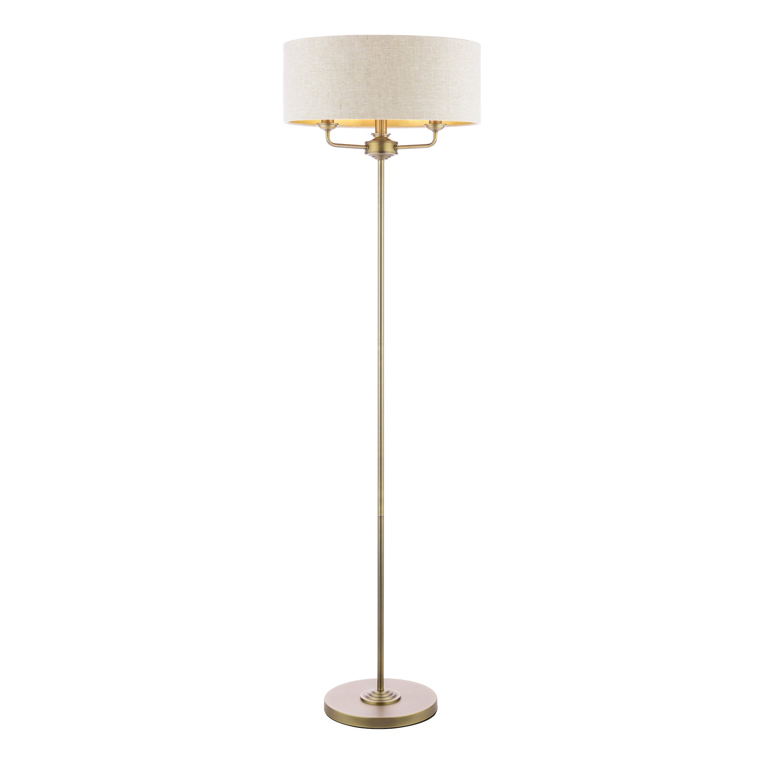 Laura Ashley Sorrento 3 Light Floor Lamp Matt Antique Brass With Natural Shade
