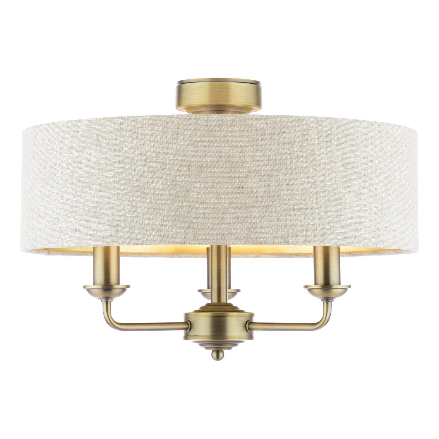 The Sorrento semi-flush excels in bedrooms where matt antique brass adds chic sophistication, in living areas where natural linen creates warm ambiance, or in dining rooms where contemporary styling provides elegant focal points. The matt antique brass and natural shade combination works beautifully in contemporary interiors, modern bedrooms, chic living spaces, and traditional homes with lower ceilings seeking sophisticated lighting with refined modern aesthetics.