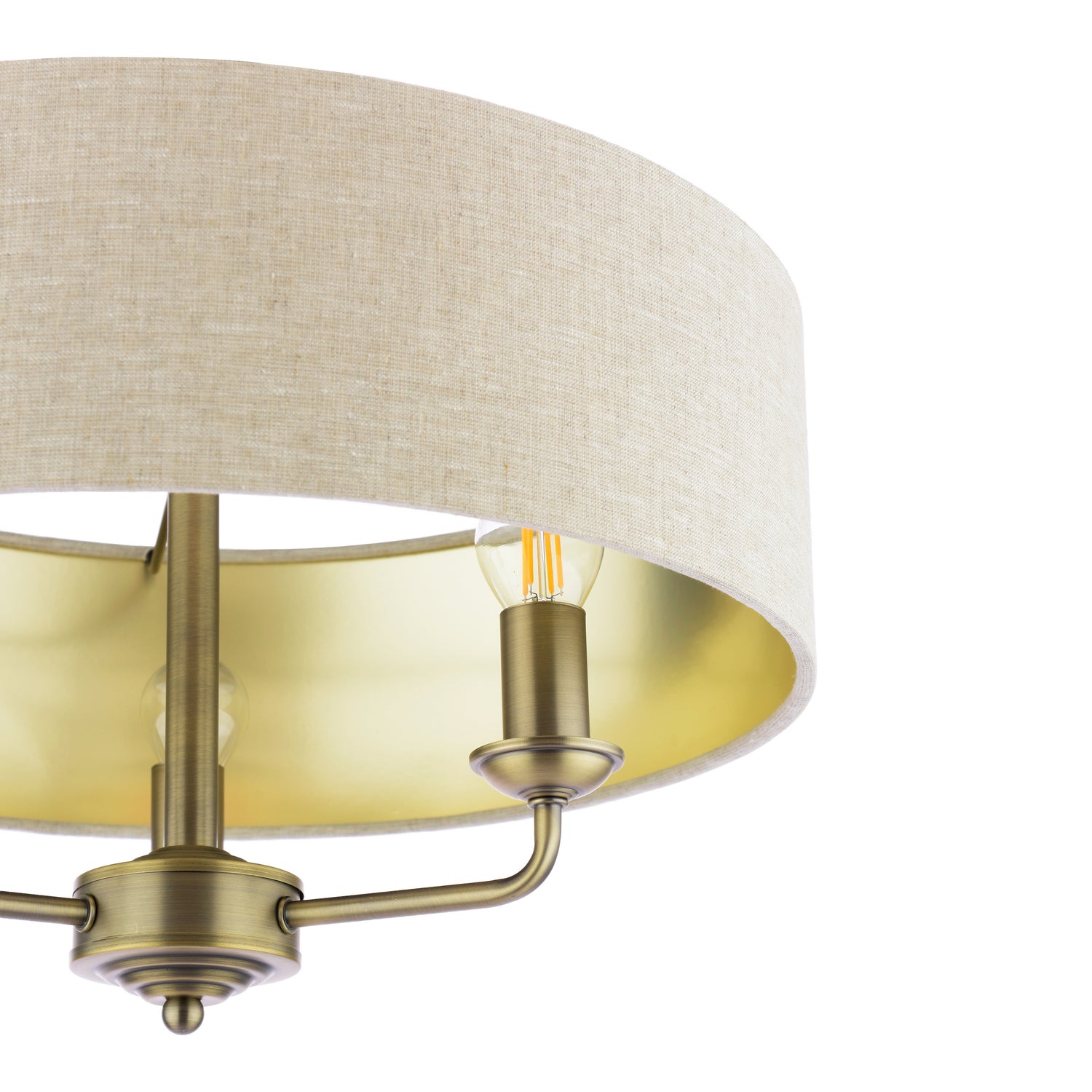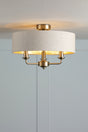 Crafted by Laura Ashley with attention to contemporary detailing, the Sorrento semi-flush showcases chic design with matt antique brass metalwork and natural linen drum shade with metallic inner. The semi-flush profile suits lower ceiling heights while creating sophisticated atmosphere. Complete with natural linen drum shade. Requires 3 x E14 bulbs (not included, max 40W each, LED E14 recommended).