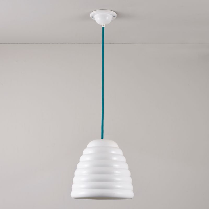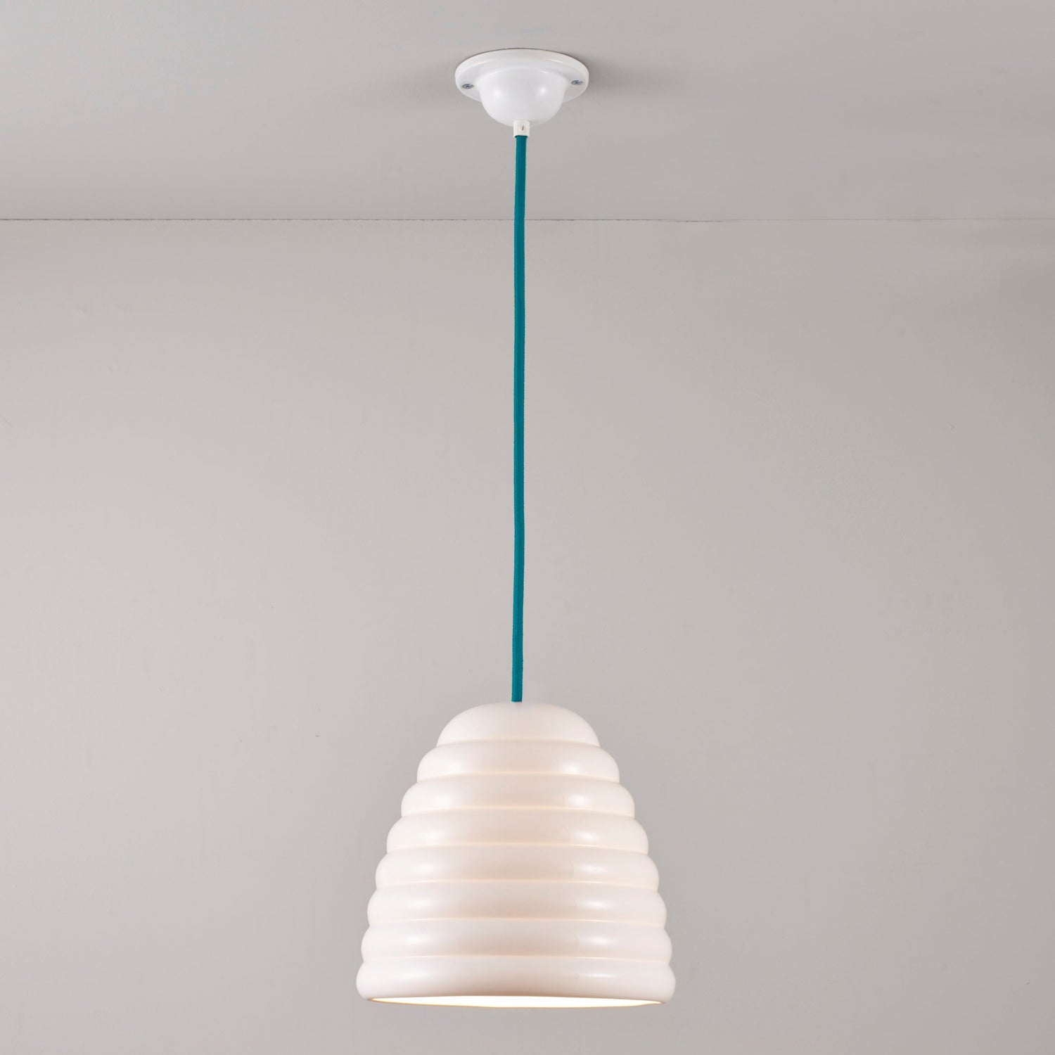 The Hector Bibendum, designed by Sir Terence Conran to celebrate Original BTC's 21st birthday and the Michelin building's centenary, is a fresh take on our Hector. Featuring a white, rippled shade in bone china and colourful cotton braided cable.