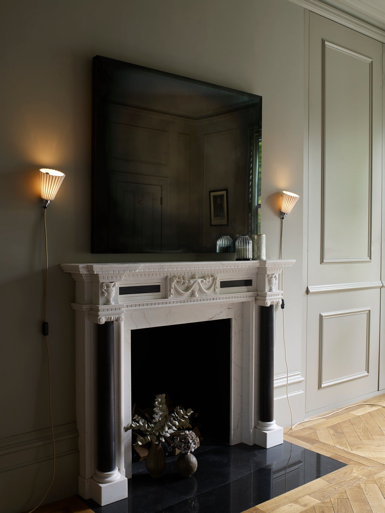 The Portable Pleat is our most flexible wall light. A pleated bone china shade is held to the wall by a satin chromed round wall fixing. The light has 2.5 metres of cotton braided cable with an inline switch and plug. This allows for the light to be positioned anywhere, without needing hard wiring.