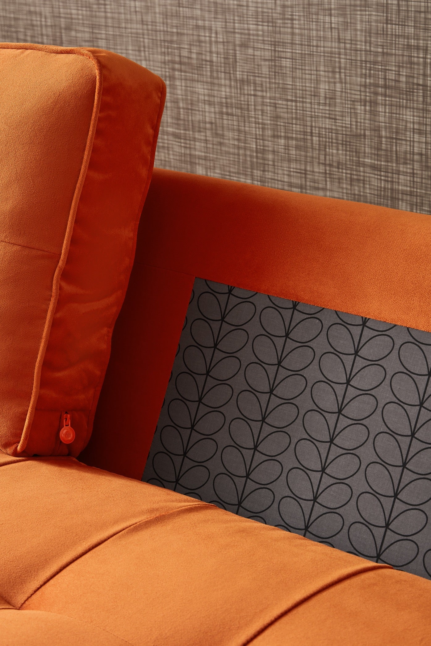 Combining the best of British craftsmanship with the design excellence of Orla Kiely, each one of our sofas is hand-made to order in the UK. Each piece in the range has been personally approved by Orla herself and all fabrics have been hand-picked by the Queen of Prints. Every sofa features official brand detailing such as woven tags and the signature ‘Stem’ printed lining cloth. The frames are made from hard wood, sourced from sustainable forests, and are pinned, screwed and glued to ensure maximum strength and stability. Each piece is built to last and comes with a 1year guarantee on all hardwood frames and steel springs.