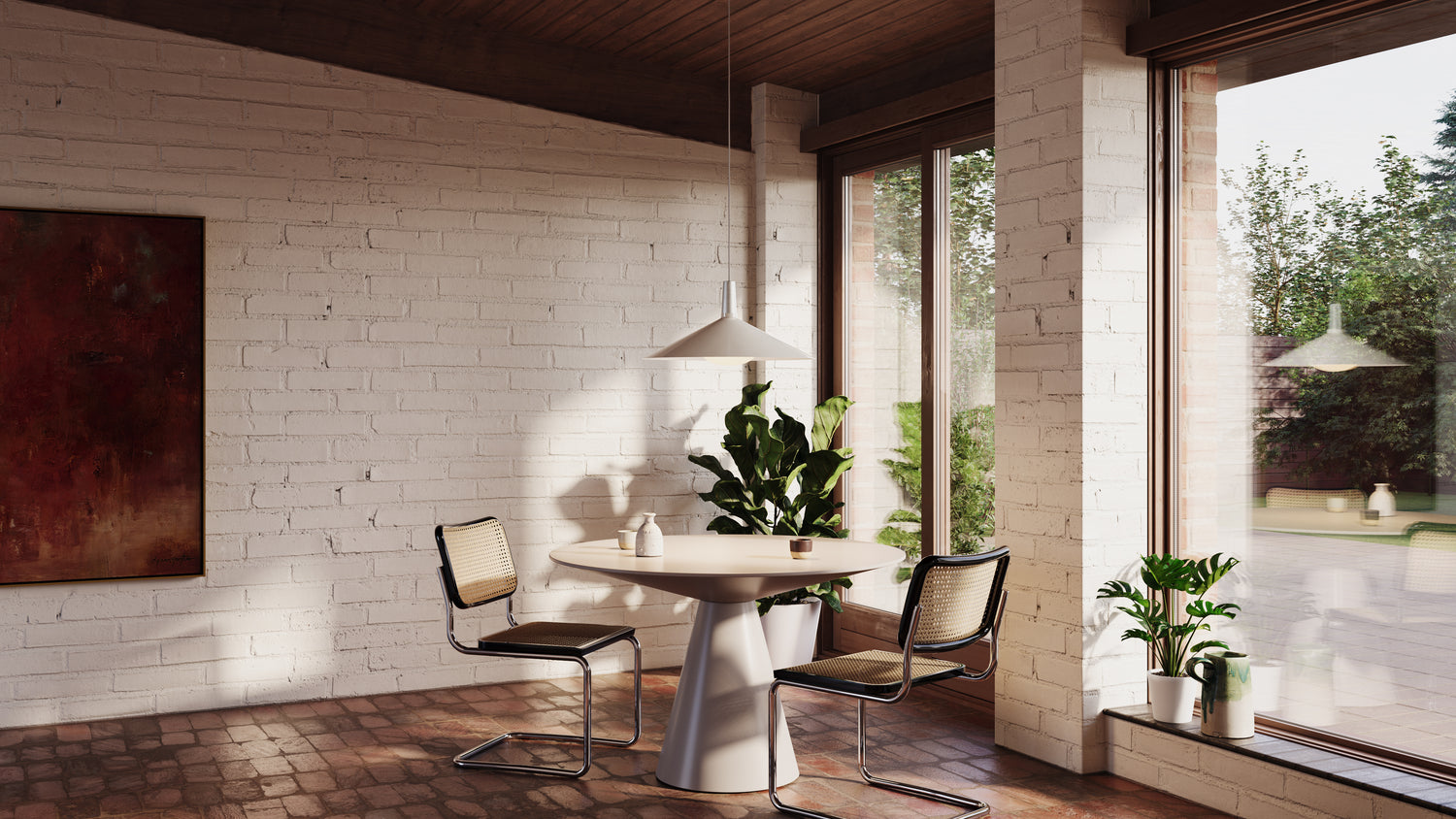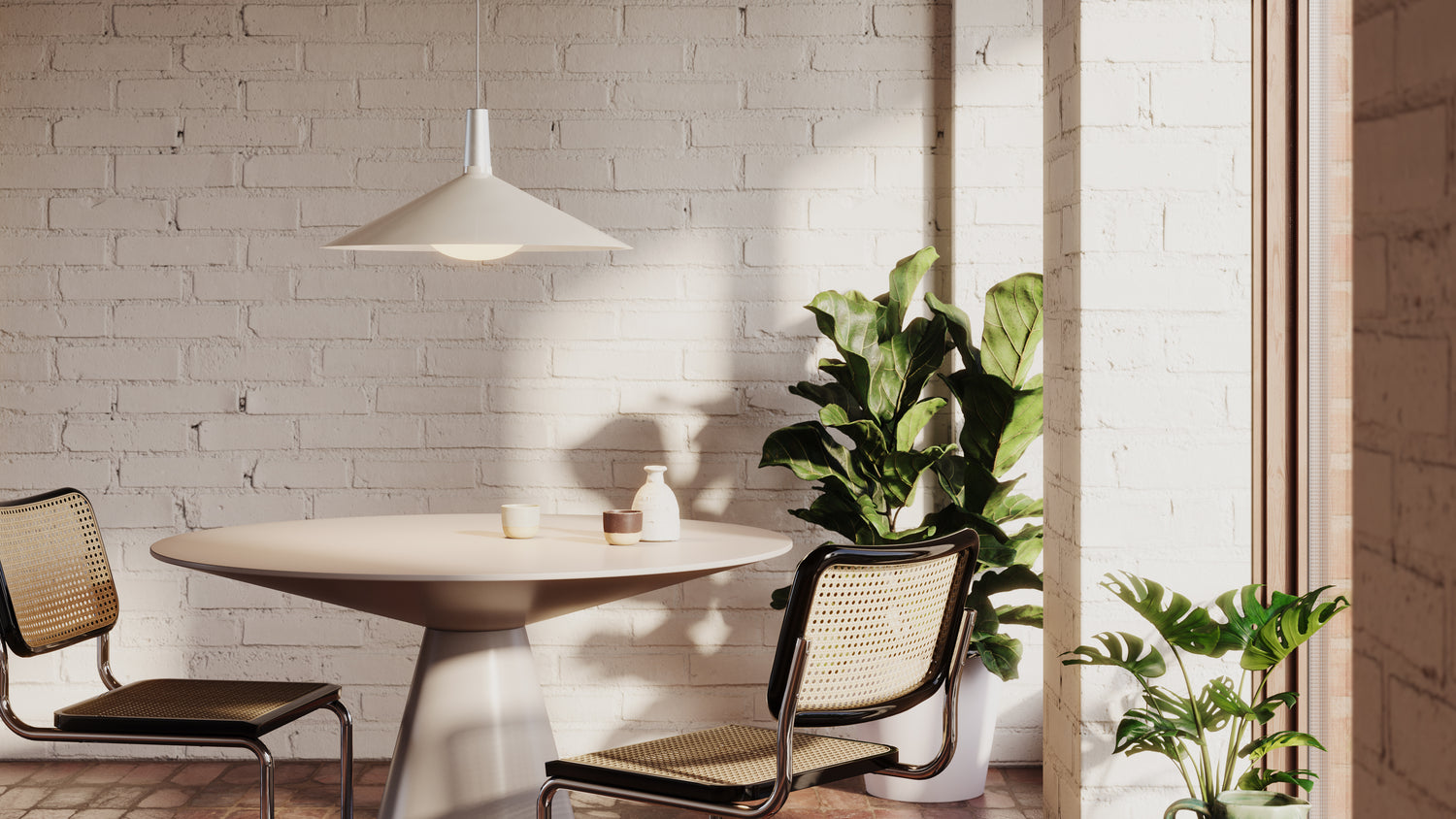 Bower is the debut shade series from Tala. Combining hand-spun steel shades from Yorkshire, UK, with anodised aluminium pendants, the modular system and numerous colours and sizes offers a variety of display options. The Bower C600 shade is a statement fixture, featuring a dramatically low incline and wide diameter to allow a broad spread of light below.